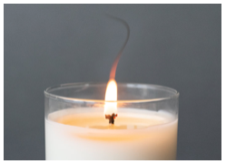 Keep the candle away from open windows, fans, high-traffic areas or vents to prevent disturbing the flame. When the flame is disturbed, it interrupts the combustion cycle and creates black smoke (sooting), and uneven burning of the candle.